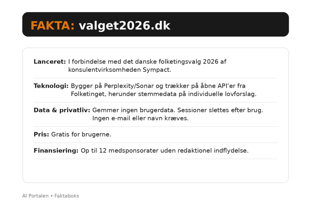 Det centrale i valget2026.dk er, at platformen ikke blot bygger på partiprogrammer. Den trækker på Folketingets åbne databaser og API’er, der registrerer, hvem der stemmer hvad på hvilke lovforslag. Det betyder, at brugerne kan undersøge, om en politikers offentlige retorik stemmer overens med hans eller hendes faktiske adfærd bag Christiansborgs mure.