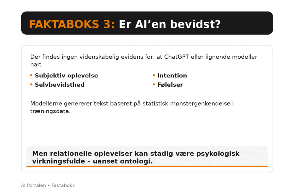 Det interessante er, at relationen producerer en oplevelse, der ligner bevidst dialog. Vi står måske ikke over for syntetisk bevidsthed. Men vi står over for syntetisk relation. Og relationer former mennesker.